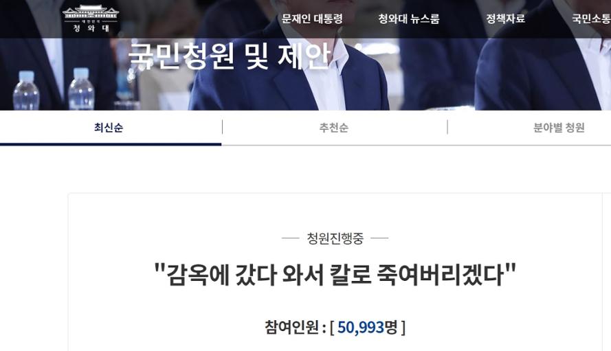 청와대 국민청원 - ì¬ì¸êµë¯¼ ì°í¸í¬í' ëì í´ ë¬ë¼ ì²ìë êµë¯¼ì²ì ì¬ì¸ëí¬ì 문 / 17일 오전 11시30분 현재 해당 청원에는 2882명이 참여했다.. Jun 21, 2021 · 청와대의 직접 소통은 '국민이 물으면 정부가 답한다'는 철학을 지향합니다. 17일 오전 11시30분 현재 해당 청원에는 2882명이 참여했다. May 17, 2021 · 청와대 국민청원 게시판에는 '60대 피해자의 목숨을 앗아간 허위매물을 근절시켜주세요'라는 청원이 지난 13일 올라왔다. 공개된 청원 답변은 청와대 홈페이지 > 국민청원 > 답변된 청원 또는 청와대 트위터, 페이스북, 유튜브를 통해 확인하실 수 있습니다. Jun 17, 2021 · 청와대 국민청원제도는 홈페이지에 청원 글을 게시하더라도 곧바로 공개하지 않고 30일 이내에 해당 청원을 지지하는 100명의 사전 동의를 받도록.